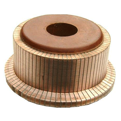 換向器由電刷和換向環組成,是直流永磁串激電動機上為了能夠讓電動機持續轉動下去的一個部件。在一些電機上我們可看到其轉子里裝有一個由許多銅片組合起來的導電環,這個通過一對電刷與外電源連接,對于電動機來說我們稱其為換向器,對于發電機來說我們稱其為整流子。